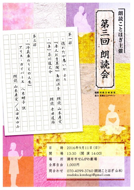 今回のように、また、聴く人を楽しませる朗読をしていただけることを楽しみにしています!